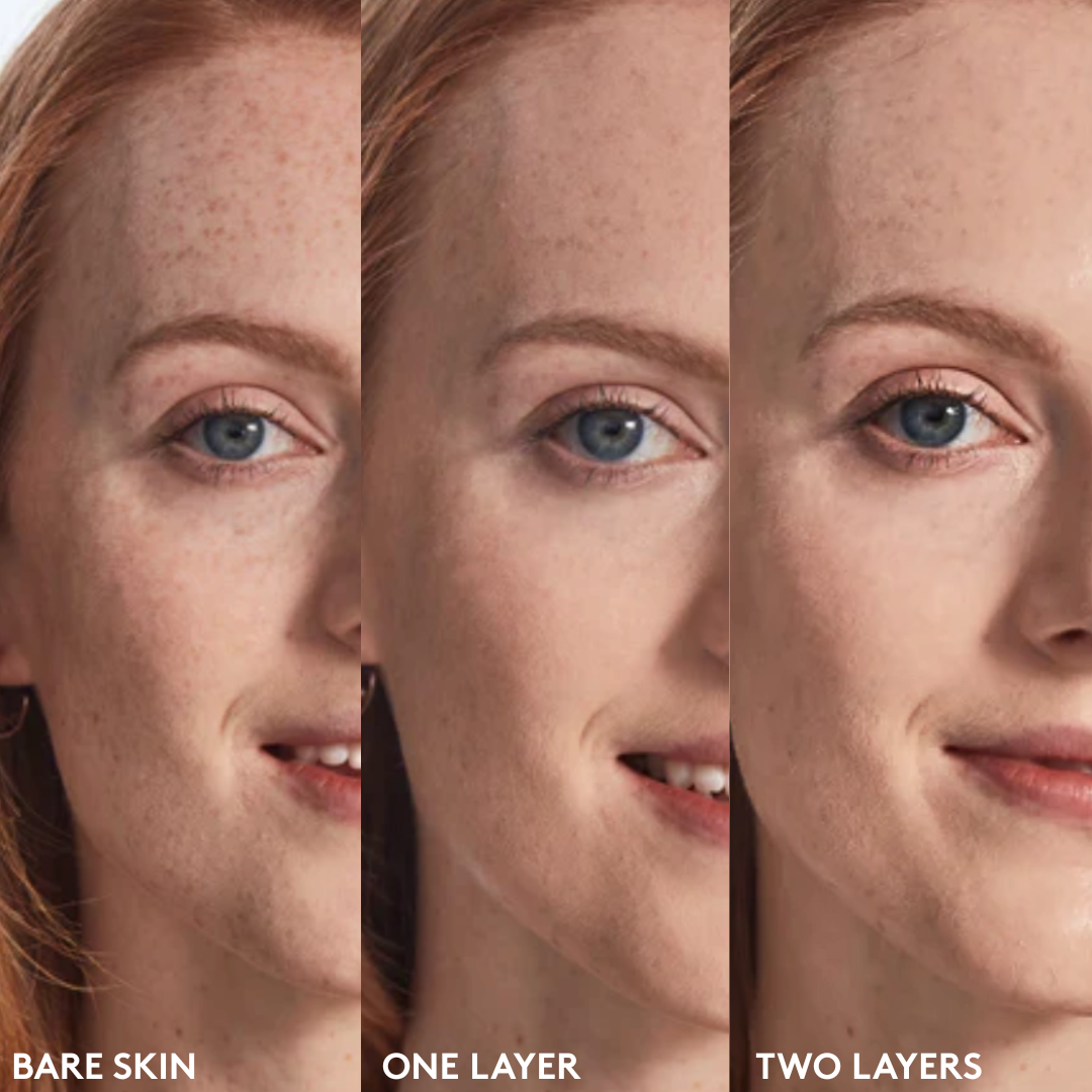 - Once the formula is no longer white, apply it evenly on the face. Finish with just one layer for a naturally flawless finish, or build another layer or two for fuller coverage.