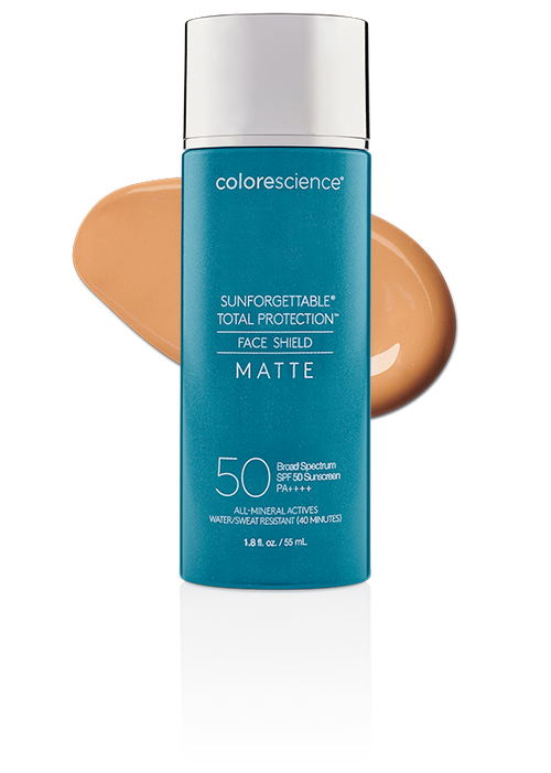 - Use Total Protection Face Shield MATTE all over, and touch up throughout the day with Total Protection Sheer Matte SPF30 brush for continued defense and shine control.